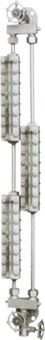 按其本體結(jié)構(gòu)雙面玻璃及單面玻璃分為透視式 T 型及反射式 TR 型,工作壓力為 1.6 、 2.5 、 4.0 、 6.4 、 10 、 12 、 16MPa 多種,根據(jù)中心距長(zhǎng)短可分為 1 ~ 5 節(jié),超過(guò) 5 節(jié)即為無(wú)盲區(qū)雙排并列互相交錯(cuò)的千鳥型。